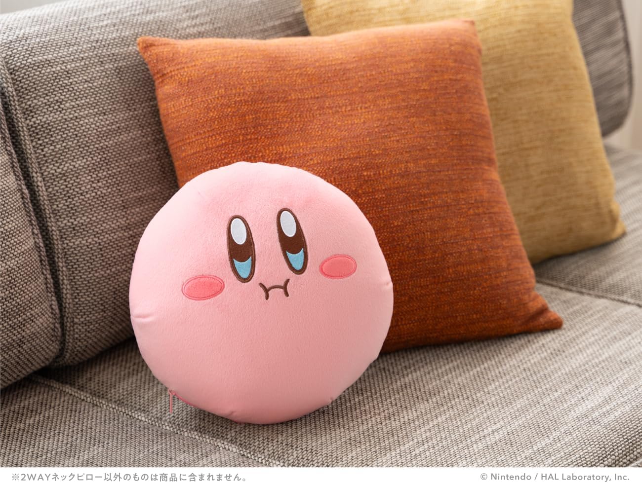 内部のビーズを移動させると、カービィ型のクッションになる2WAYのネックピローです。ご自宅ではクッションとして、外出先ではネックピローとして使えます。